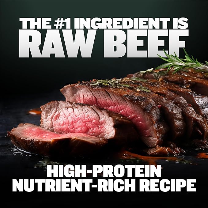 - VERSATILE DRY OR REHYDRATED SERVING: This Dog Food Toppers offer the versatility of serving either dry or rehydrated, catering to your dog's preferences. These muscle-enhancing toppers, rich in freeze-dried raw beef, apples, and sweet potatoes, boast 32% crude protein along with vitamins B12 and E. Ideal for all breeds, they provide a nutrient-rich meal enhancer that focuses on muscle growth and health, offering a balanced and delicious way to strengthen your dog's muscular health and vitality.