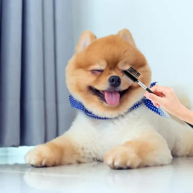 Tear Stain and Flea Comb for Small Dogs - Double-headed Pet Grooming Brush for Removing Crust and Mucus from Face