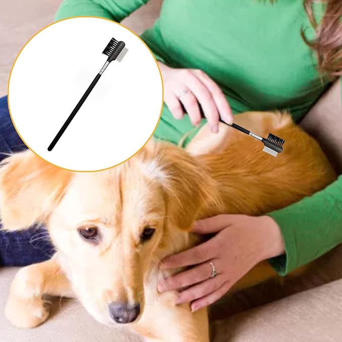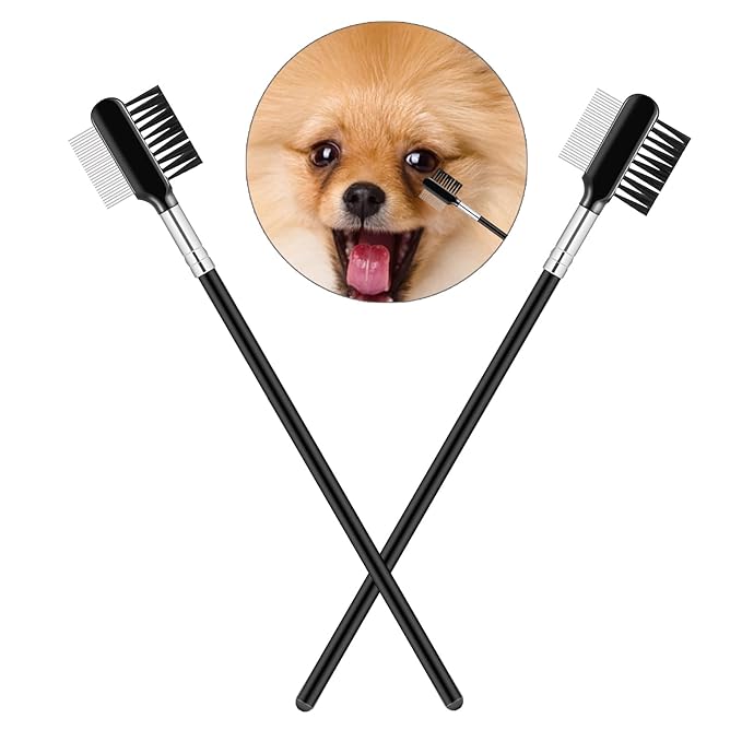 - The tear stain remover comb have a wide range of uses.You can use the artificial fiber brush to comb the puppy's eyebrows and eyelashes.You can use the stainless steel side to clean up puppy tears and mucus around your dog's eyes.The dog grooming combs can clean fleas from dogs and cats.