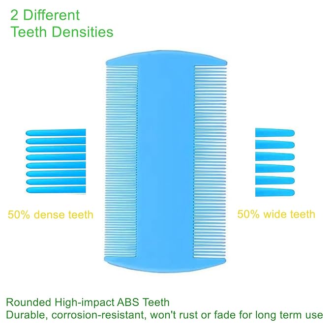 - THOUGHTFUL SET: Our pet grooming comb set includes 5 different kinds of flea combs, 2 tooth comb, 1 double sides lice comb, 1 long-needle & 1 short-needle comb to meet different needs. Perfect for straightening out the knotted tangles hair, as well as finishing and fluffing.