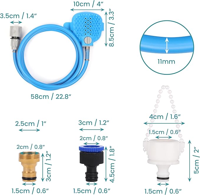 - ALL-IN-ONE GROOMING TOOL: Enhance the grooming experience of your pets with this all-in-one grooming tool. Our grooming hose combines the features of a scrubber, bathing brush, massager and shower head into one bathing/washing solution for dogs and cats.