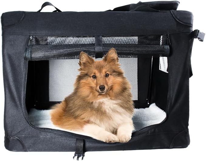 STARBRILLIANT 3-Door Portable Soft-Sided Folding Soft Dog Travel Crate Kennel,Black (32″x23″x23″)