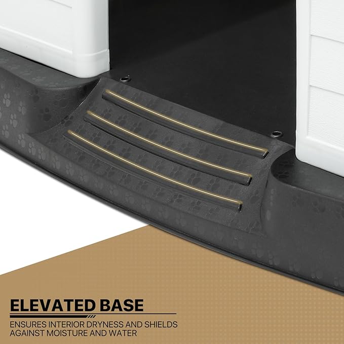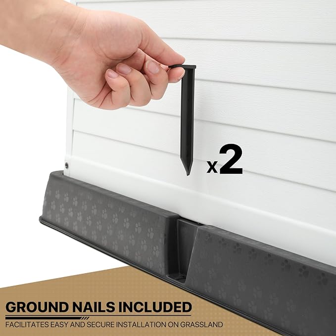- Superior Shelter with Elevated Comfort - Elevate your dog's comfort with our 3" raised base, designed to fend off ground dampness and ensure a dry haven even during rain or snow. The house’s airtight structure, combined with the slanted roof and ground nails, guarantees protection against all elements, from dirt to the strongest winds.