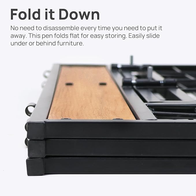 - 【Simple Setup and Storage】Assembly is straightforward, with no complex tools required. When not in use, the playpen can be effortlessly disassembled and tucked away, saving space.