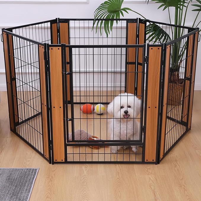 - 【Robust and Aesthetic Structure】Constructed from sturdy metal components, our puppy playpen is built to last, resisting damage from small pets while enhancing its longevity. The design is not only strong but also aesthetically pleasing, blending seamlessly with your home decor. Rounded edges safeguard your pets against scratches, ensuring their safety within the enclosure.