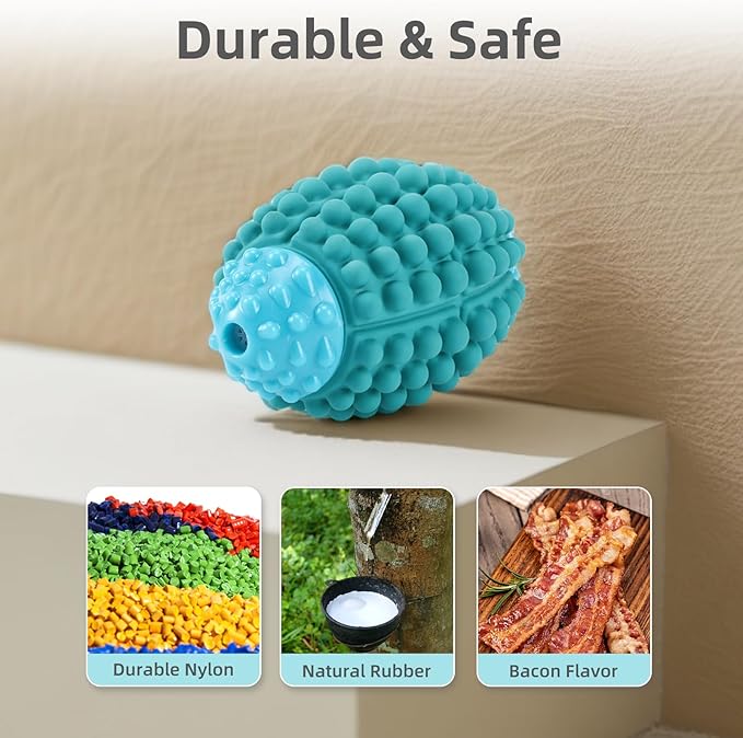 - Durable Dog Toys: The indestructible dog balls for aggressive chewers are made with nylon and rubber, which effectively safeguard the well-being of dogs. Aggressive chewers dog toys for large dogs are tough and bite-resistant enough to stand the test of aggressive chewers. Let your furry friends have fun with dog football toys! The super chewer dog toys are specially designed for 30-90lbs. Durable dog toys for aggressive chewers are tough to destroy and almost indestructible