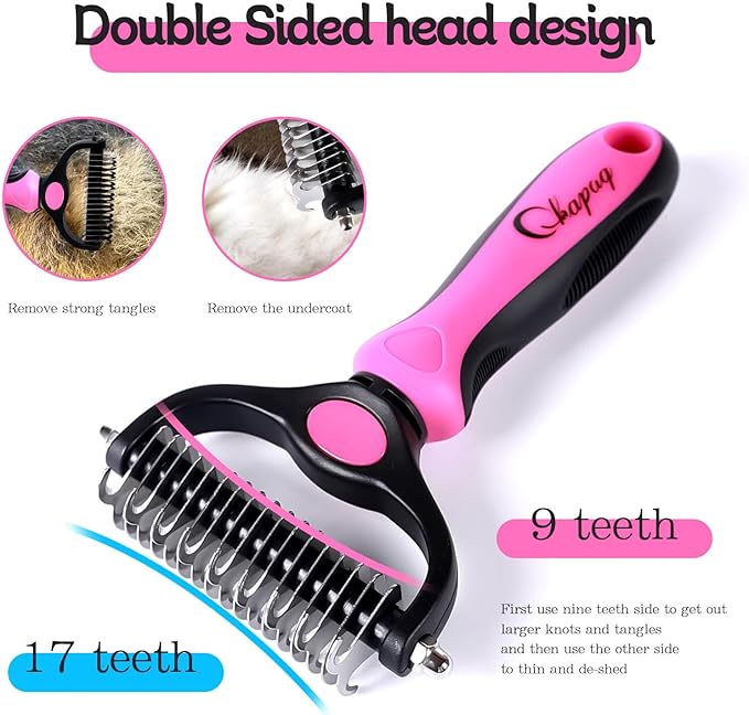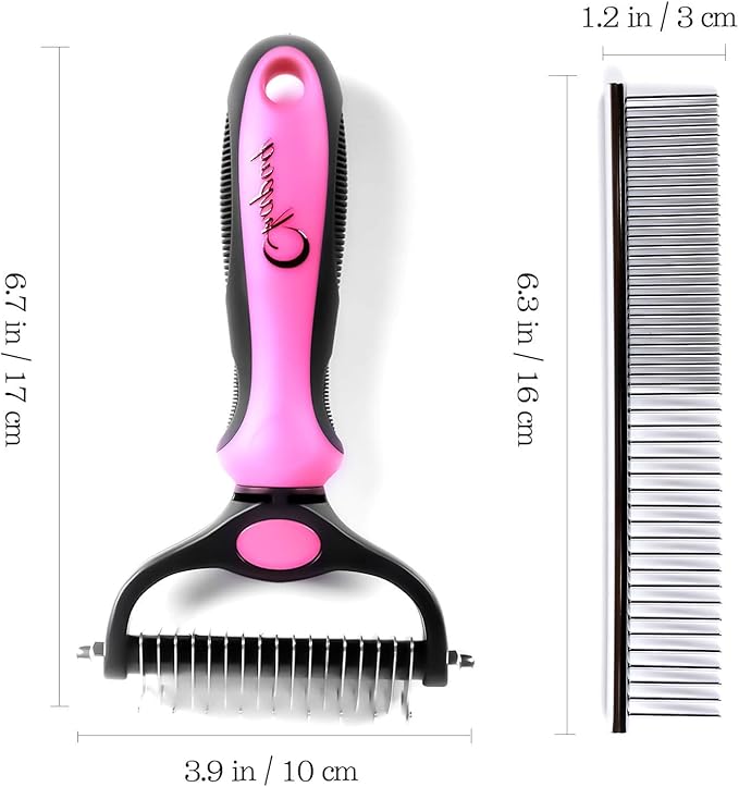 - DESIGN OF DOG DECOATING TOOL】: High quality stainless steel metal teeth and compact design make our product sturdy and durable. High quality and lightweight TPR handle provides a comfortable non-slip grip and allows you to enjoy grooming your dog's hair. Double coated high quality combing shedding dog comb, dog rake, cat brush, matte coat comb for dogs.