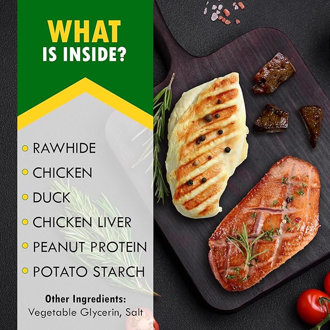 - ✅ NOURISH WITH HIGH PROTEIN from ALL NATURAL CHICKEN & DUCK: Our kabob dog treats aren't just delicious – they're packed with protein fatty acids to support your dog's skin, coat, and overall health. Say goodbye to dull coats and hello to shiny, healthy fur with every satisfying chew. Give your pup the nutritious reward they deserve while keeping their skin and coat looking their best.