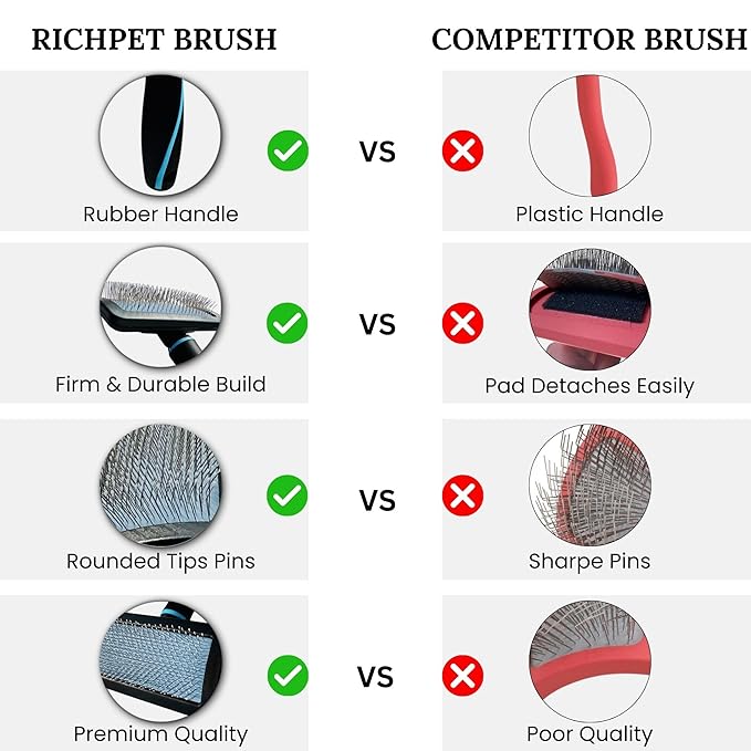 - ππ π πππππππ ππππππππ, πππππ ππππ - Say goodbye to tangled fur and hello to smooth, shiny coatsβwhether youβre a pro or a pet parent. This Richpet slicker brush for dogs & cats makes grooming quick, easy, and enjoyableβwhy settle for messy, stressful grooming?