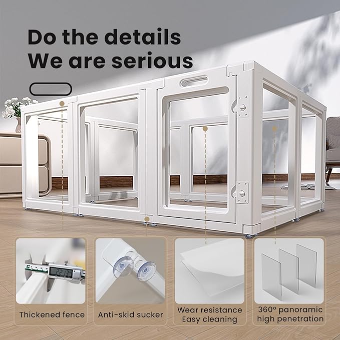 Dog Playpen,Dog Pen,Clear Dog Playpen, Acrylic Dog Pen,Easy to Install and Remove Dog Playpen and Kennel Playpen, Suitable for Dogs, Cats,Dog Playpen Indoor (White, 23.6" H, 12 Pieces)