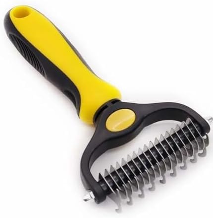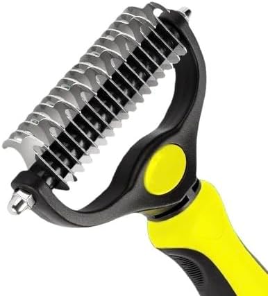 - EXCLUDE TANGLES AND KNOTS: This two-sided brush. One side 9 – teeth and other side with 17- teeth cat and dog undercoat rake for shedding exclude matted fur, tangles, and knots! It’s both sides of our comb for Dogs and Cats thin get rid of loose fur, flakes, and dirt.