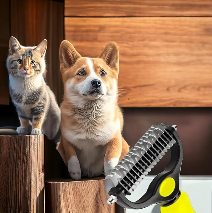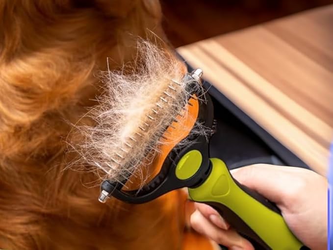 The pet grooming brush works wonders on my golden retriever’s thick coat. It removes loose fur effortlessly and my dog actually enjoys being brushed now.