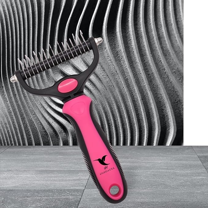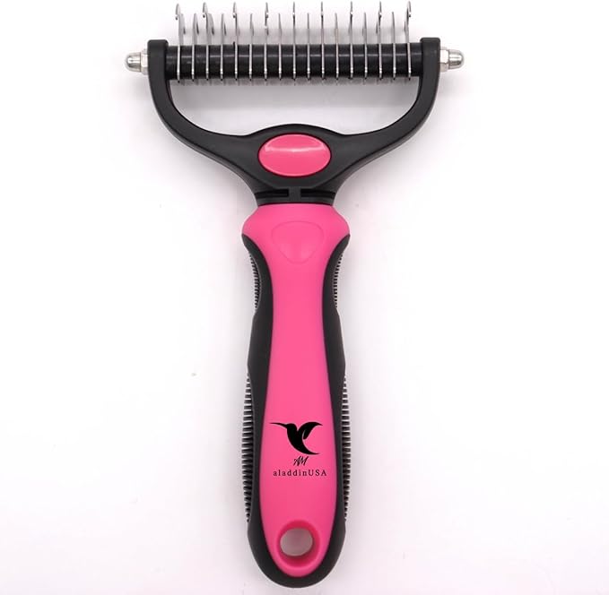 - EXCLUDE TANGLES AND KNOTS: This two-sided brush. One side 9 – teeth and other side with 17- teeth cat and dog undercoat rake for shedding exclude matted fur, tangles, and knots! It’s both sides of our comb for Dogs and Cats thin get rid of loose fur, flakes, and dirt.