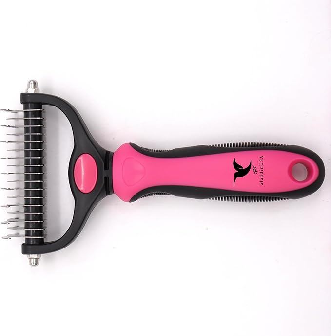 - EASY TO USE & SAFE FOR PETS: The blades rake brush for dogs and cats are rounded to gently massage your pet while removing loos hair. Made with rubber handle and stainless steel on brush sides. Its convenient grooming tool to use along coated breed.