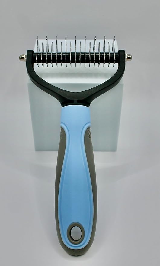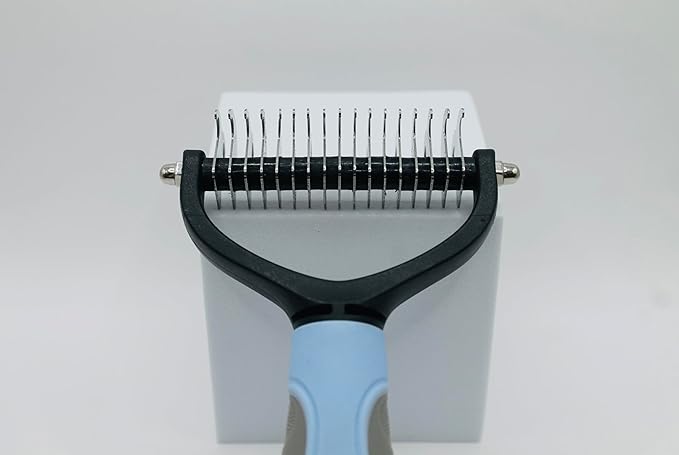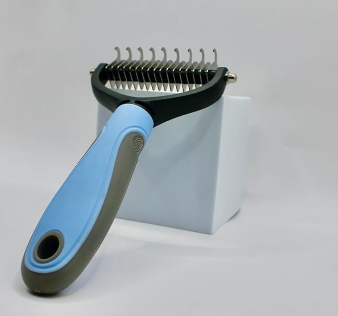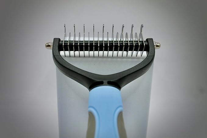 - - All-in-One Cat Dog Undercoat Rake: Dematting and Deshedding: Combines de-matting, de-shedding, and brushing in one tool for a pleasant grooming experience. - Durable Construction: Solid handles provide comfort and durability, making them easy to hold and suitable for all sizes of pets.