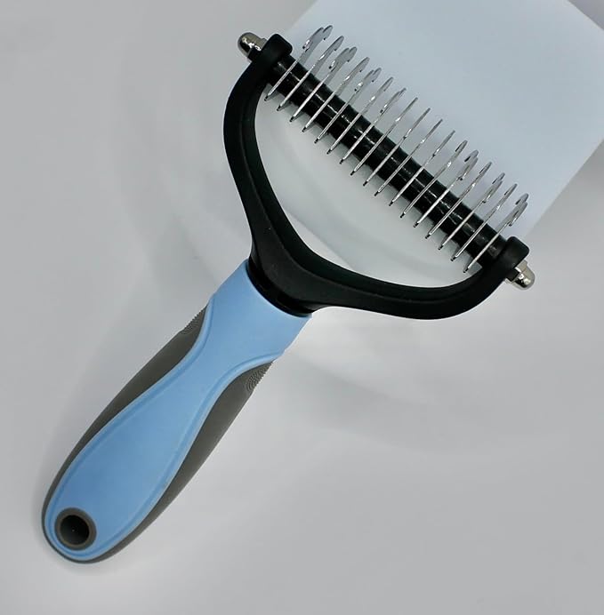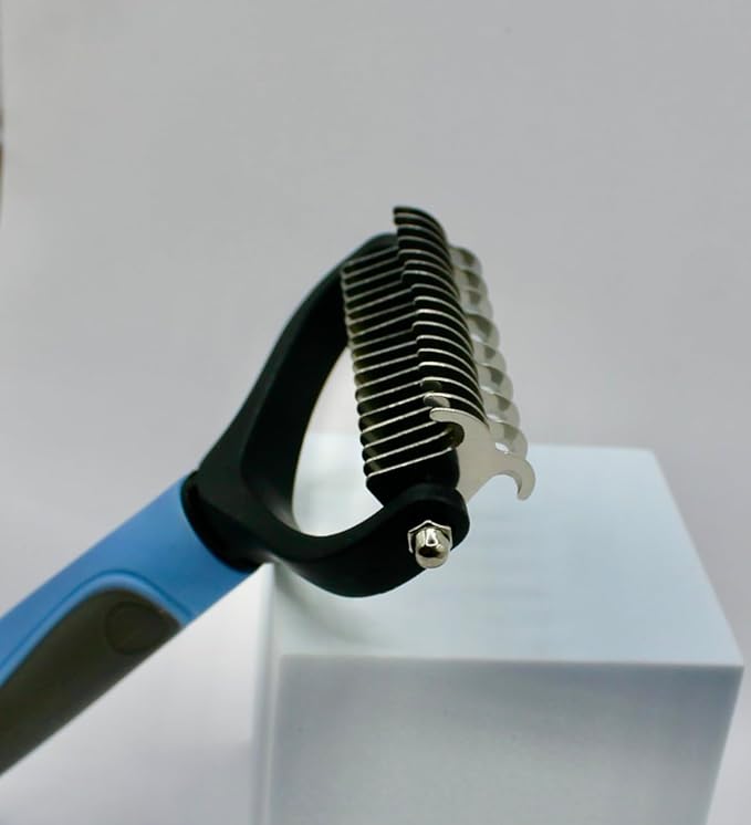- - All-in-One Cat Dog Undercoat Rake: Dematting and Deshedding: Combines de-matting, de-shedding, and brushing in one tool for a pleasant grooming experience. - Durable Construction: Solid handles provide comfort and durability, making them easy to hold and suitable for all sizes of pets.