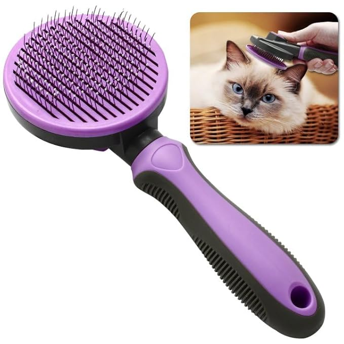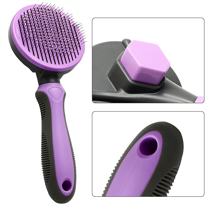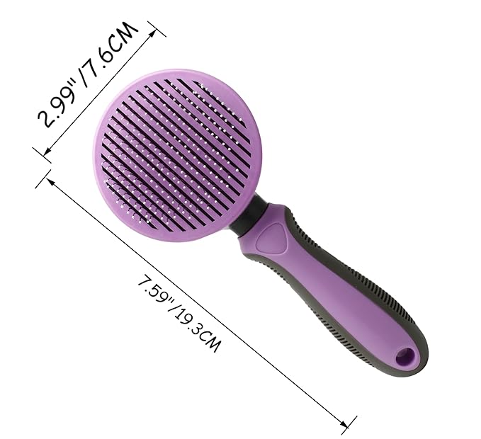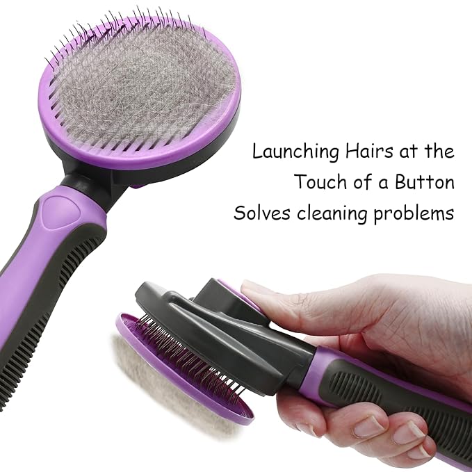 - ☀『Automatic Cleaning Brush』 This cat slicker brush features an automatic hair removal button on the handle. Simply press the button to instantly remove hair from the bristles, saving time and effort during grooming and cleaning.