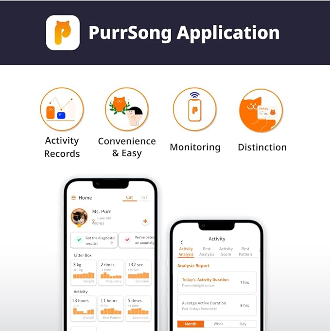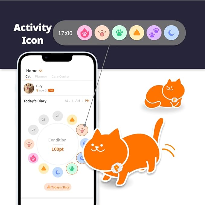 - 😸 Record Cat's Activities: LavvieTAG records your cat's daily activities, including walking, running, sleeping, and calorie consumption, using its unique activity analysis sensor. (Compatible with Android 8.0 and above smartphones, as well as iPhones)