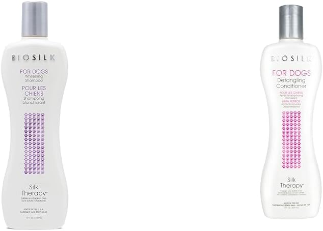 BioSilk for Dogs Whitening Shampoo & Detangling Conditioner Bundle | 12 Oz Shampoo & 12 Fl Oz Conditioner | for Brightening and Detangling | Made in The USA