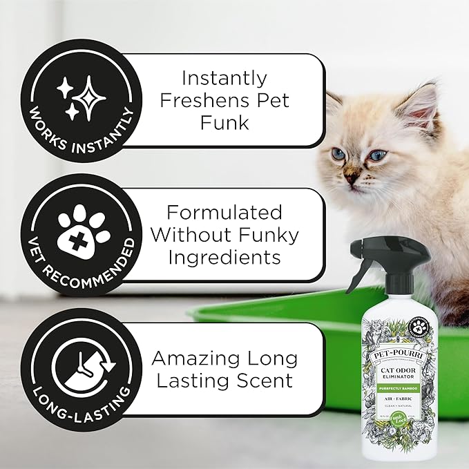 - Instant Freshness, No Lingering Odors: A few sprays of Pourri Purrfectly Bamboo instantly deodorize cat odors, especially strong urine and litter box smells, so your home stays fresh and inviting.