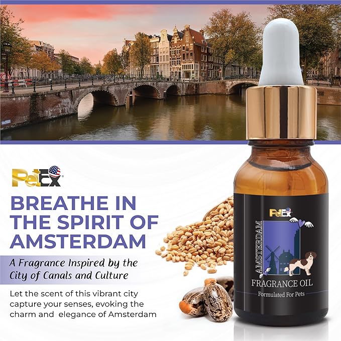 Petex Premium Pet Fragrance Oil | Ultra Premium Natural Pet Care with Dead Sea Minerals | Dog Perfume Fragrance Oil Long Lasting Scent | Natural Pet Cologne - Suitable for Dogs and Cats (Amsterdam)