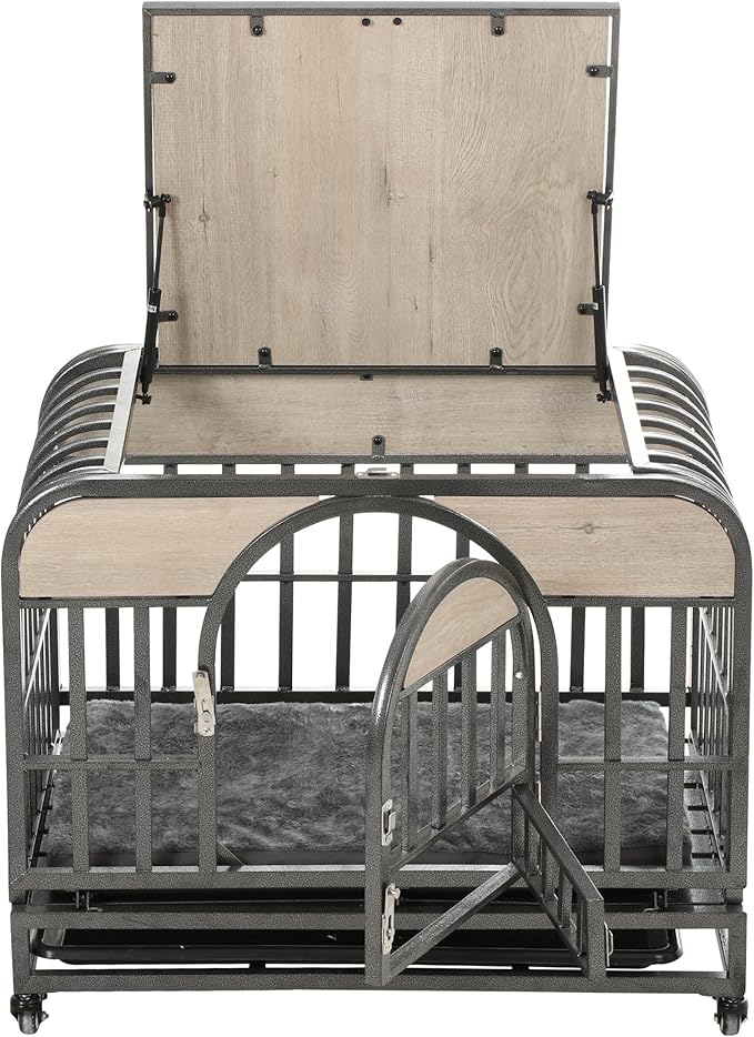 - Durable and Movable: Our heavy duty crate made of steel and wooden, for a dog can last as long as you need. 360 degree wheel design is more convenient for moving.