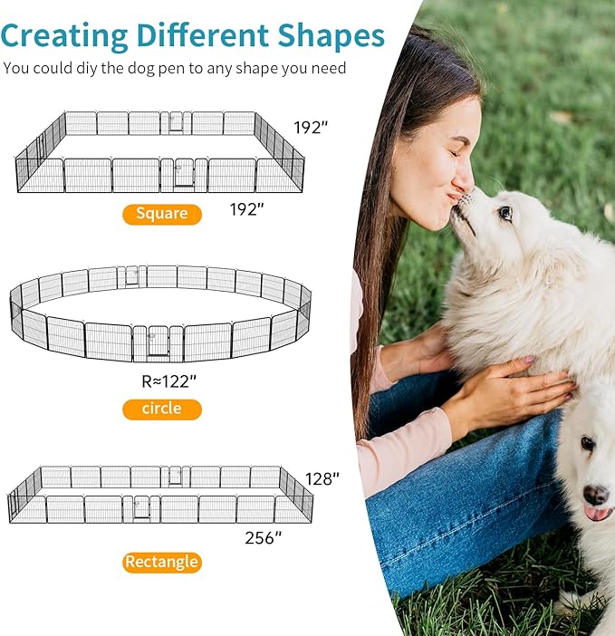 - 🐕【Change to Multiple Shape Easily】Our puppy playpen design allows for multiple shape configurations to meet your needs, such as the shape of rectangle, square or octagon. This dog playpen will be ideal for any pet lover. If you have any questions about our pet playpen, please feel free to contact us. Dog Playpen Dog Pen Dog Fence Puppy Playpen