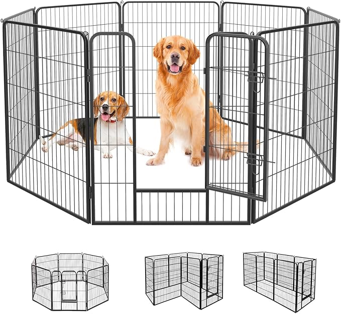 - 🐕【High Quality & Durable Material】Our dog playpen constructed from sturdy heavy duty rust resistant metal for increased longevity and durability. Durable puppy playpen great for indoor or outdoor use. Our pet playpen is your best choice! dog playpen puppy playpen pet playpen