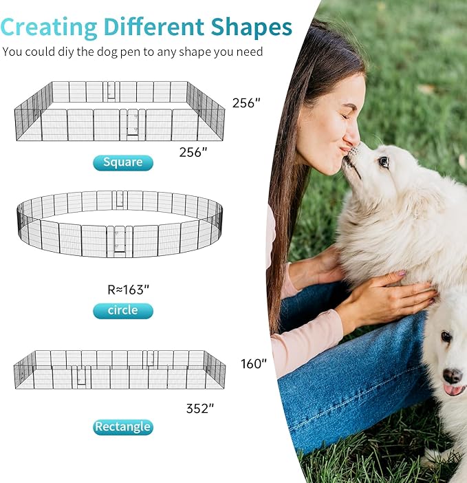 - 🐕【Change to Multiple Shape Easily】Our puppy playpen design allows for multiple shape configurations to meet your needs, such as the shape of rectangle, square or octagon. This dog playpen will be ideal for any pet lover. If you have any questions about our pet playpen, please feel free to contact us. Dog Playpen Dog Pen Dog Fence Puppy Playpen