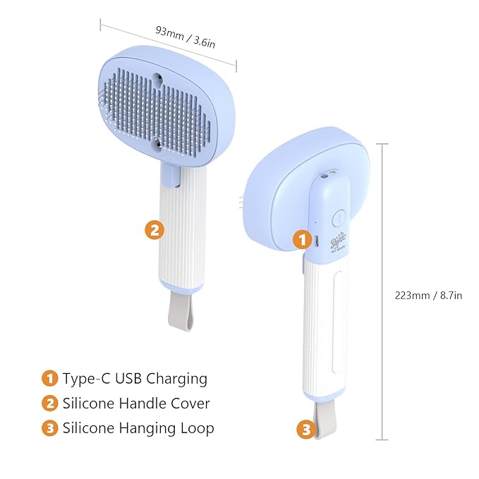 - Negative Ion Technology: The comb is equipped with negative ion technology, which helps to release negative ions and promote blood circulation. This can help to soothe your pet's skin, reduce inflammation, and improve its overall health.