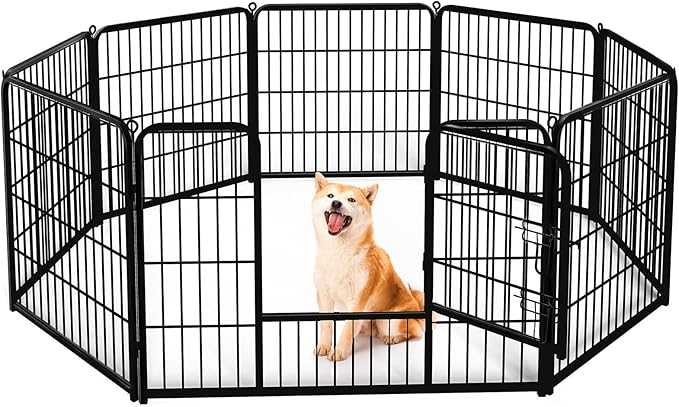 - 【Tailored Options for Every Pet】 Available in 8-panel and 16-panel, with 3 kind of heights: 24”, 32”, and 40”. Our diverse selection ensures a perfect fit for dogs of all sizes and accommodates various pets, such as kitten, cats, rabbits and so on, providing a reliable and comfortable space for all. And it’s easy to assemble this foldable metal dog pen according to the desired area of use.