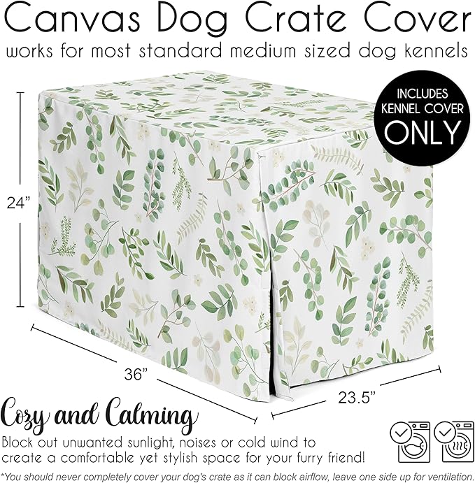 Sweet Jojo Designs Green Boho Floral Leaf Dog Crate Cover – Kennel Covers for 36 Inch Pet Cage Medium - Neutral Sage White Bohemian Watercolor Botanical Flower Woodland Tropical Garden Nature
