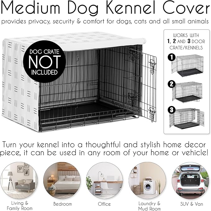 Sweet Jojo Designs White and Black Boho Mudcloth Dog Crate Cover – Kennel Covers for 36 Inch Pet Cage Medium - Black and White Bohemian Minimalist Southwest Mud Cloth Hatch Neutral Triple Line