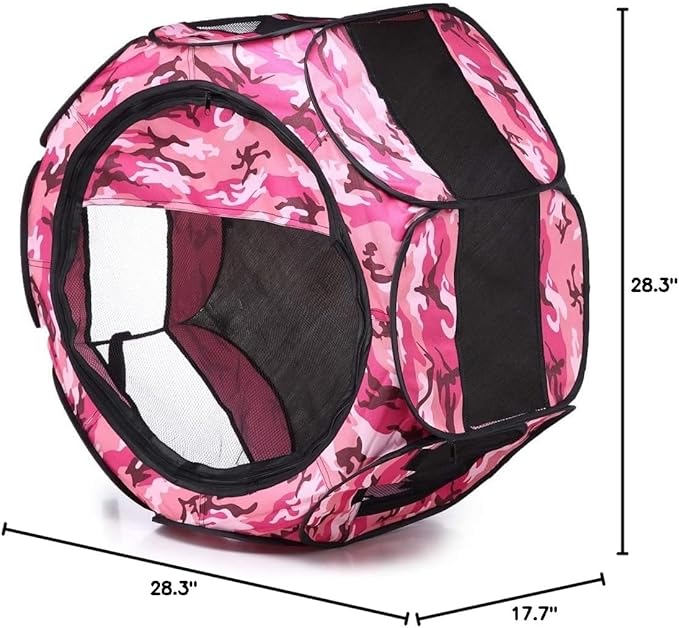 - Dimensions - Pet Playpen Size: 28.3”(Diameter) x 17.7" (Height). Proper size playpen provides a spacious interior for puppys to play and rest, so Please Measure Your Pets befor placing a new order to make sure get right pet tents.
