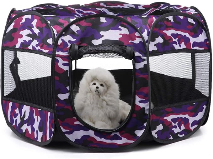 Portable Pet Playpen, 28.3" Foldable Dog Playpen for Dogie Kitten Rabbit, Exercise Playpen Tent Indoor/Outdoor Use (Violet)