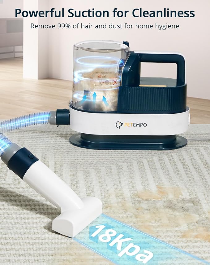- Powerful 18KPA Suction: With a robust suction power of 18000 PA, the pet grooming vacuum for dogs effectively collect 99% pet hair while trimming and brushing your dog, maintaining a clean home environment for both you and your pets. Perfect solution for at-home pet grooming, making styling easy, convenient, and mess-free.