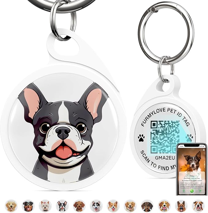 QR Code Dog Tag, Dog Tags Personalized Silent Pet ID Tag Customizable Free Pet Online Profile, BS French Bulldog