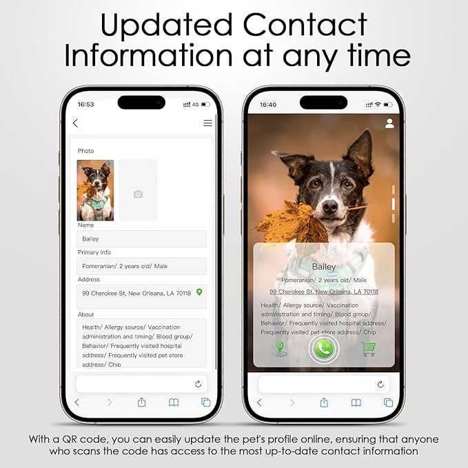 - 【Free to use】 Free link to pet profile page to fill in the information, no application, subscription or battery required, convenient and practical. If you have any questions please contact us and we will respond right away!