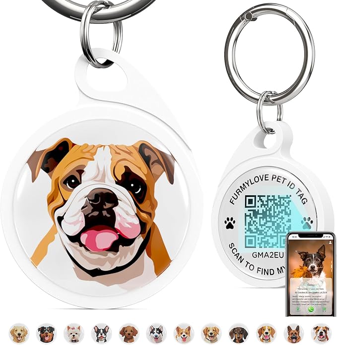 QR Code Dog Tag, Dog Tags Personalized Silent Pet ID Tag Customizable Free Pet Online Profile, English Bulldog