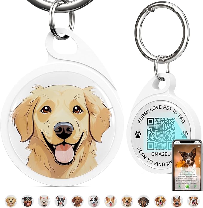 QR Code Dog Tag, Dog Tags Personalized Silent Pet ID Tag Customizable Free Pet Online Profile, Golden Retriever