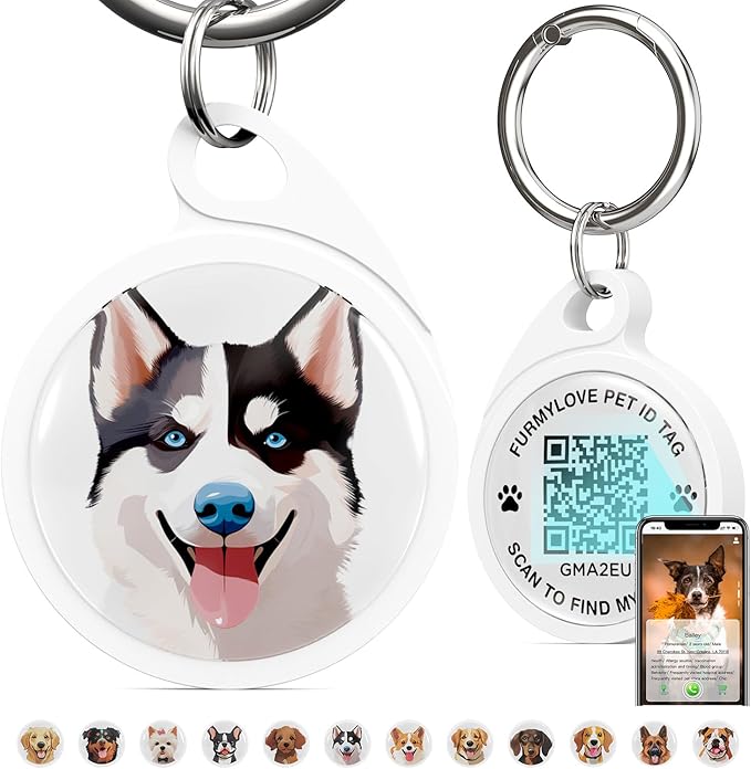 QR Code Dog Tag, Dog Tags Personalized Silent Pet ID Tag Customizable Free Pet Online Profile, Gray Husky