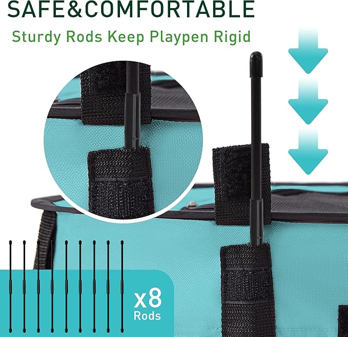 • Easy to Assemble and Store: The Portable Pet Play Pen comes along with a convenient carrying case that can easily store your playpen. Follow the instructions,you can assemble it in just 30 seconds. And it's also easy to fold back flat when not in use. Our lightweight portable pet playpen can be used indoors, outdoors, traveling, camping, etc.