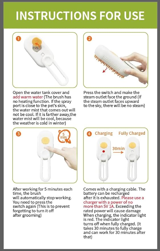 - ⭐【Pet Steam Brush】 This steaming cat brush with a 360° handle rotation is a helpful addition to your pet care routine. It is a vital tool for pet owners as it efficiently handles issues like tangling and matted fur. This brush keeps your pet's coat healthy and glossy, regardless of whether you have a dog or cat.