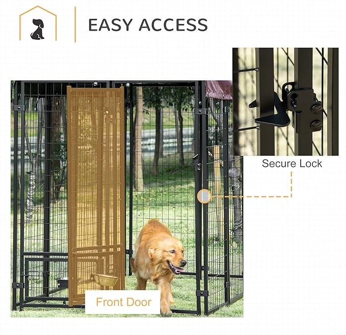 - Walk-in Design: Our outside dog pen has a gate lock, which can ensure the security of your animals. Pet parents can easily enter to feed, teach, and play with their dog.