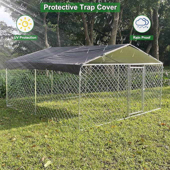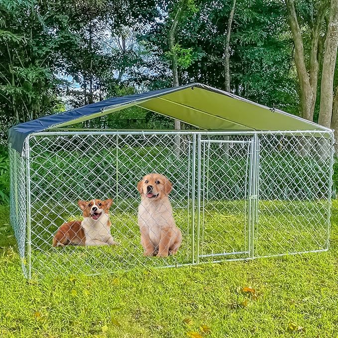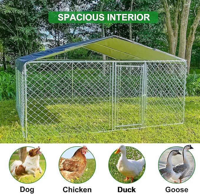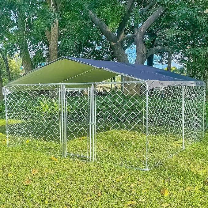 - LUXURIOUS ROOMINESS-Our dog kennel is a perfect choice for your pets. The size of dog enclosures is 118x118x67 inches, Large enough for your pets to relax in a pet-friendly & secure outdoor space. The dog cage is sturdy and durable, breathable and easy to clean, making your pet feel happy and comfortable