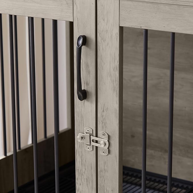 - 【Sturdy Door Bolt】This dog crate end table features robust and elongated locks securely welded to iron bars, provides security and durability. The convenient button release mechanism ensures quick exit in emergencies, allowing your pet to escape instantly when needed.