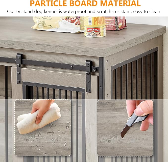 - 【Multifunctional Use】This is not only a double dog crate furniture for 2 large dogs, but also a tv stand dog crate. There is plenty of tabletop space for storing bulky items. You can put a TV on it, and enjoy a good time with your pets.