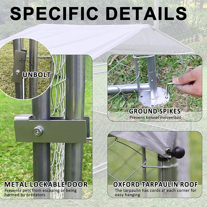 - Heavy Duty Made - This outdoor dog kennel features reinforced side support bars, fully enclosed wire edges, and 1.2'' sturdy galvanized iron pipe, which effectively increases the overall stability and strength.