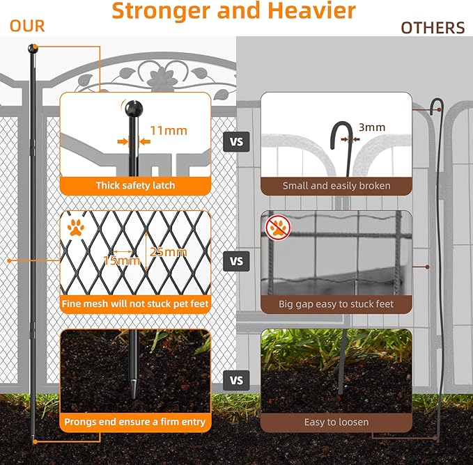 - Unique Dog Fence - Dog fence made from metal iron with smooth edges, stronger and heavier, resistant to be damaged and bitten, creates a secure and cozy spot for small dogs, bunnies, chicks, ducks and kittens, 15mm wire gap, tight enough to prevent them from escaping, will not stuck pet feet