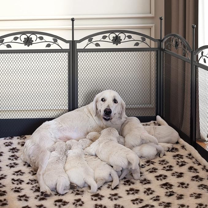 - 3 in 1 Dog Playpen - The pen not only works great as a whelping fence for newborn puppies, it also can be used as a dog fence when they grew up or beautiful garden fence for plants, designed with exquisite details on the top for a gorgeous look, suitable for both indoor and outdoor yard uses, the gate with a safety latch, keep secure and for easy pet entry